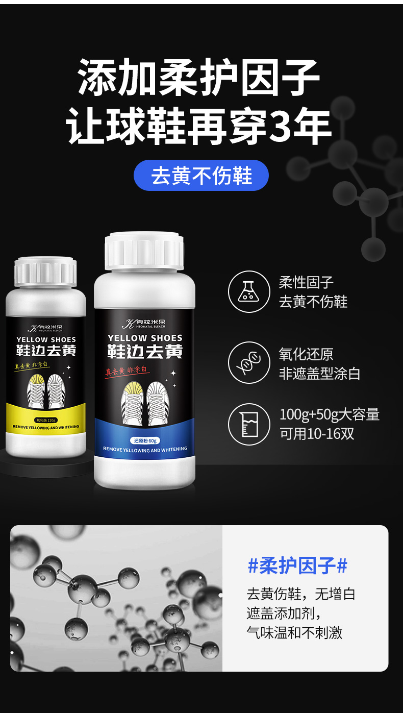 鞋边去黄鞋子发黄去氧化还原剂氧化酶洗小白鞋专用清洁清洗剂